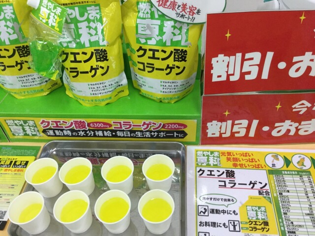 そんなイオンおゆみ野店の皆様にご好評いただいているのが、クエン酸スポーツ飲料『燃やしま専科』です。