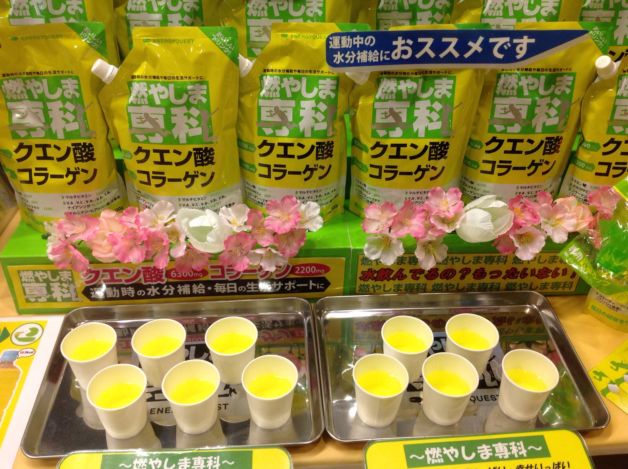 本日は東京都内のフィットネス&スパ・レアレア三鷹店さんにてクエン酸スポーツドリンク『燃やしま専科』の試飲会でした。