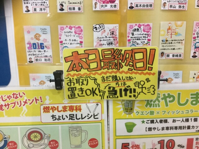 昨日に引き続き、本日はルネサンス亀戸に伺いまして、クエン酸コラーゲン粉末飲料【燃やしま専科】の試飲販売会を行いました。クエン酸とコラーゲン、さらに20種類以上の栄養素を含んだスポーツドリンクです。
