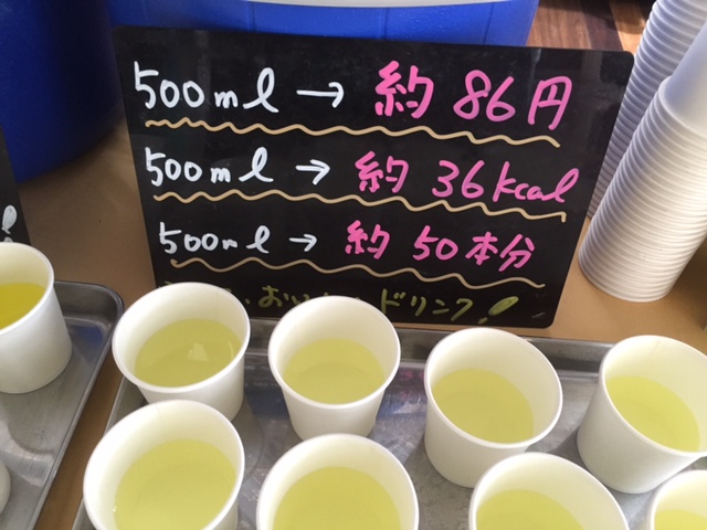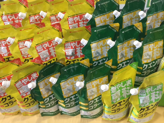 て、クエン酸コラーゲン粉末飲料「燃やしま専科」の試飲販売会を開