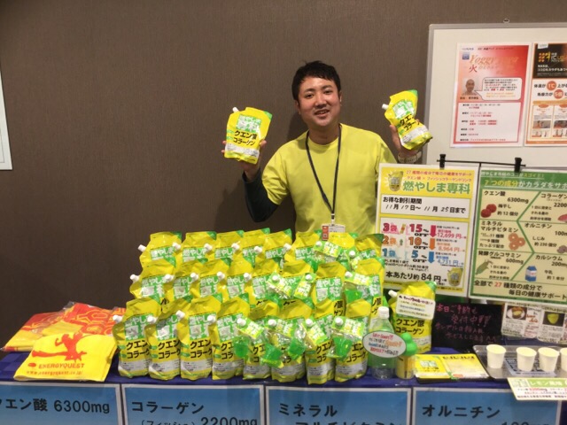 長岡市を離れても新潟出張は続きます。本日は新潟市の中央区にあります、NAS新潟店に伺いました。エナジークエストの人気商品、クエン酸コラーゲン粉末飲料【燃やしま専科】の試飲販売会を行いました。定番のレモン味と、冬限定のゆず味の試飲販売会となります。