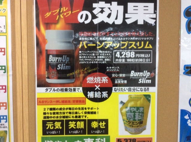 そんな運動される方にオススメのクエン酸粉末スポーツドリンクの【燃やしま専科】の試飲会を行いにルネサンス竜ヶ崎店さんにお邪魔しています。