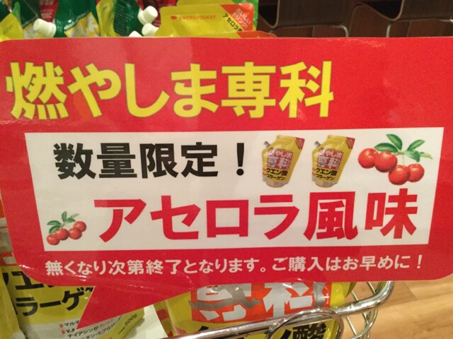 「燃やしま専科」の柚子風味とアセロラ風味は限定商品ですので、少しでもご検討の際は是非お早めに。大人気商品ですので、残りわずかです。