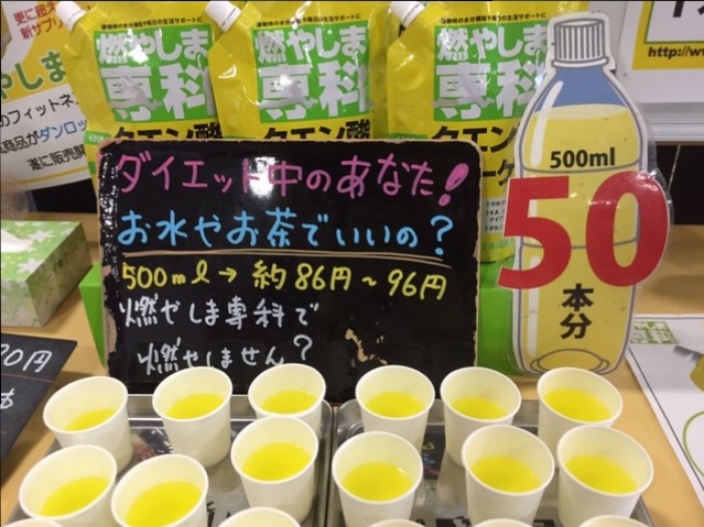 本日は茨城県にあるスポーツクラブにて、クエン酸コラーゲン粉末飲