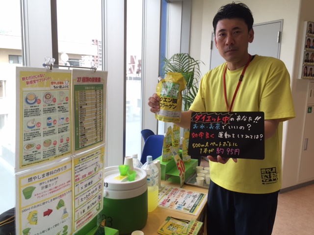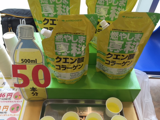 暮里店にて、クエン酸コラーゲン粉末飲料「燃やしま専科」の試飲販
