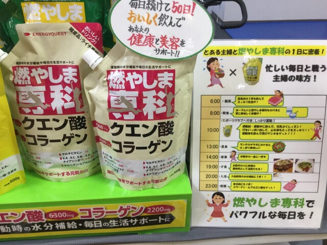 試されたいお客様は、この機会にルネサンス天王町店にお越しいただき、クエン酸コラーゲン粉末スポーツドリンクの「燃やしま専科」をお試しください。