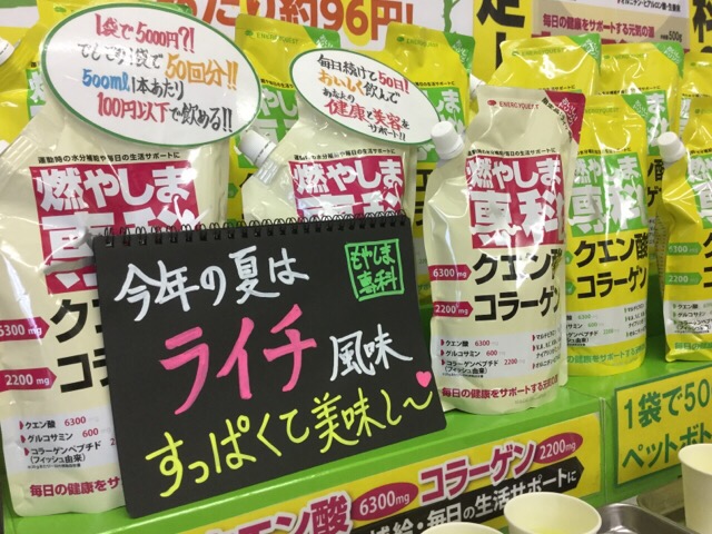 そんなルネサンス徳山さんで、今日・明日と行うキャンペーンはもちろん、クエン酸飲料燃やしま専科のキャンペーンです。