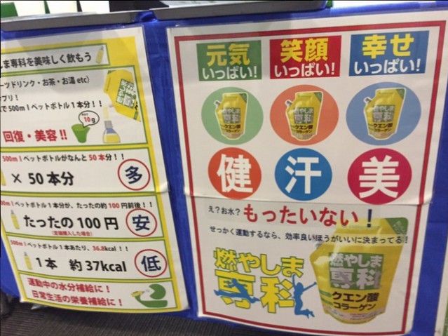 本日も愛知県にあるスポーツクラブにて、クエン酸コラーゲン粉末飲