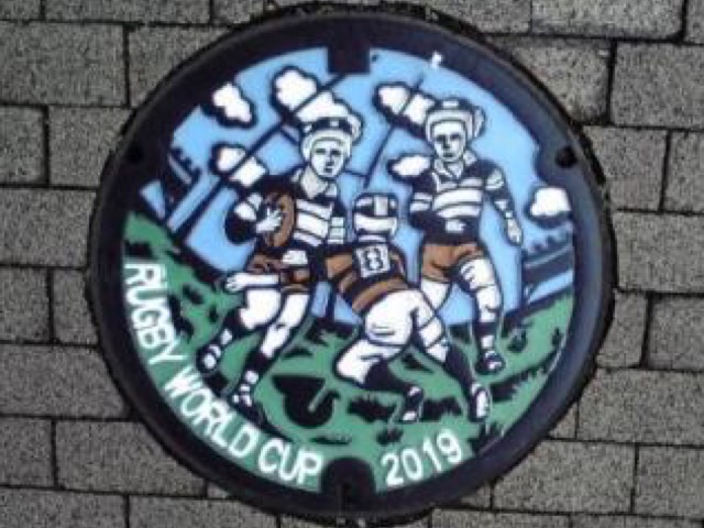 本日は東大阪方面に来ております。東大阪といえば、ラグビーをやっている方はすぐに思いつくと思いますが、花園ラグビー場があります。高校の全国大会が開催されるラグビー場です。昨年はラグビーワールドカップで、日本中がからだ燃えるぐらい熱く燃えあがりました。2019年は日本で開催です。花園ラグビー場ももちらん開催スタジアムです。東大阪市では、いろんなとこで2019年をアピールしており、マンホールもラグビーのイラストでした。