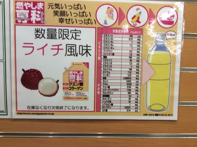 男女問わず人気なクエン酸粉末スポーツドリンク【燃やしま専科】は27種類の成分で健康をサポートします。カルシウム、マルチビタミン、グルコサミン、コラーゲン、オルニチンなど入ってます。大袋に入っていて、これ一袋で500mlのペットボトルが50本取れます。
