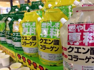 本日は、神奈川県にあるスポーツクラブにて、クエン酸コラーゲン粉末スポーツドリンクの「燃やしま専科」と、クエン酸アミノ酸粉末スポーツ飲料の「アップイー」、「ダウンエフ」の試飲会を開催しております。