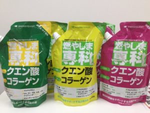 燃やしま専科には、クエン酸はもちろん、コラーゲン、オルニチン、ミネラル、グルコサミン、食物繊維、カルシウムなど27種類もの成分が入っています。
