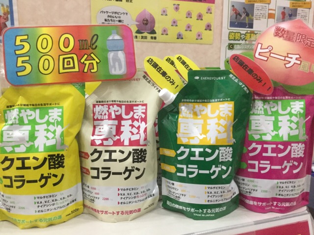 昨日に引き続き、今日は京都府にありますスポーツクラブにて、クエン酸コラーゲン粉末スポーツドリンクの燃やしま専科、試飲販売会を行いました。