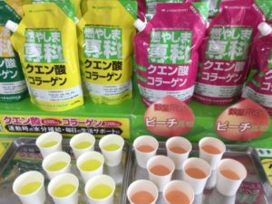 クエン酸飲料『燃やしま専科』はビタミンやミネラル、コラーゲンにヒアルロン酸、グルコサミンやオルニチンなどの栄養成分を27種類配合。粉末タイプで水やスポーツドリンクなどに溶かして飲むスポーツ飲料です。水素水との相性もいいので、日常や運動時の水分補給に是非ご活用ください。