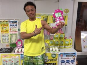 にて、クエン酸コラーゲン粉末飲料「燃やしま専科」の試飲販売会を