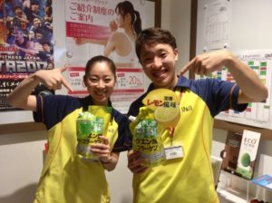 本日はイオンでキッズイベントがあり、盛り上がっていましたが、スポーツクラブ内もアクティブに運動される方で盛況でした。そんな伊丹昆陽店さんで人気のクエン酸スポーツドリンク『燃やしま専科』。お馴染みの黄色いパッケージをご利用のお客様も増えて来ているようです。運動には黄色いスポーツドリンクが必須ですよね!