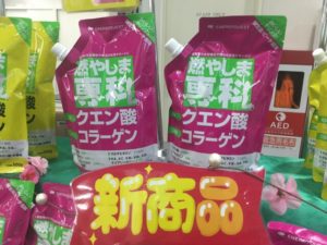 にて、クエン酸コラーゲン粉末飲料「燃やしま専科」の試飲販売会を