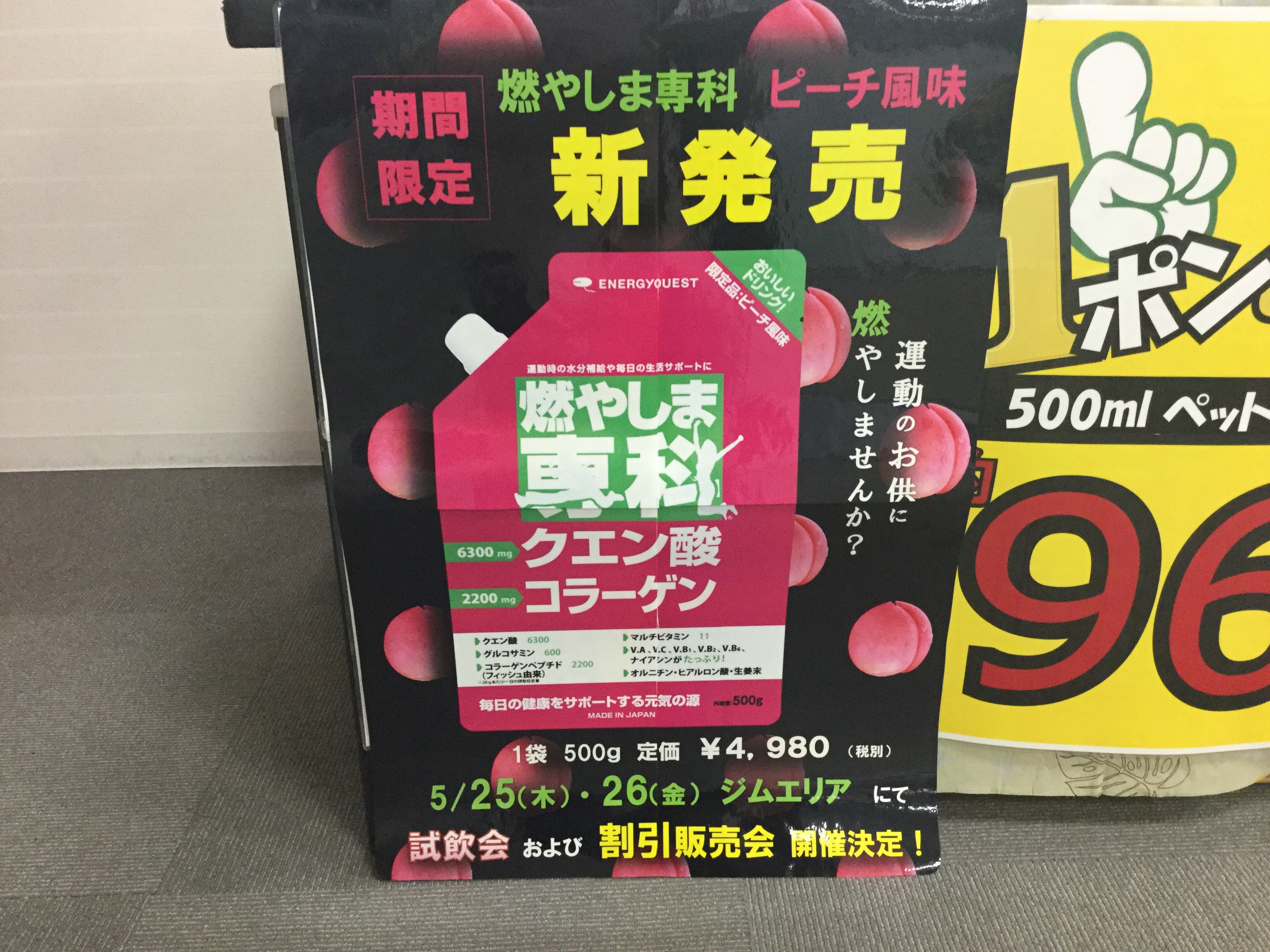 本日行われました、クエン酸飲料の「燃やしま専科」はこの店舗でいつでも購入出来ますが、お得なキャンペーン期間は5月31日迄となっております。