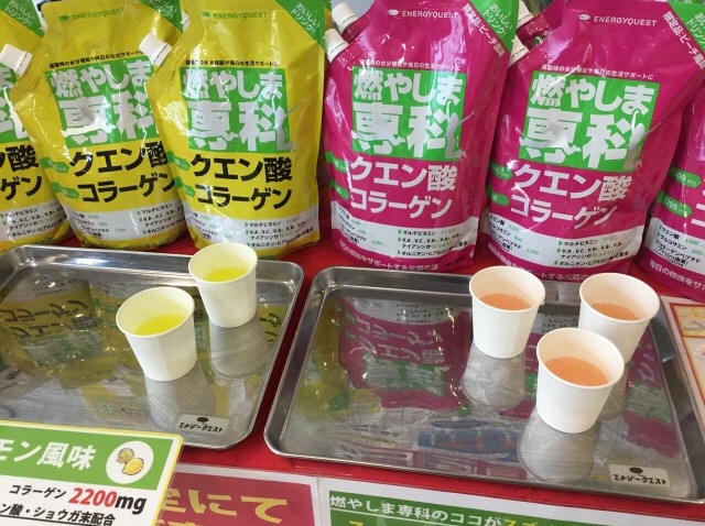 本日は一昨日に引き続き静岡県のスポーツクラブにてクエン酸コラーゲン粉末ドリンク「燃やしま専科」の試飲会を開催しました。今日のクラブはコート数も沢山ありかなりテニスが盛んです。大人から子供まで、朝から晩までラケット片手に人が行き交います。そんな皆さんのもう片手にはクエン酸ドリンク。テニスの多くの方が愛用してくれてます。皆さんの元気なプレーはウナギパワーでは無くクエン酸ドリンクパワーだったと確信。これからも今のパフォーマンスが保て元気でプレー出来るのを応援してます。