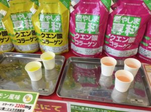 クエン酸ドリンク『燃やしま専科』はクエン酸にビタミン・ミネラル類を多く含み、コラーゲンやヒアルロン酸、グルコサミンやオルニチンなど27種類の栄養成分を配合した美容と健康をサポートするスポーツドリンクです。定番のレモン風味に加え、季節ごとの限定風味が楽しめるのも人気の秘密です。次はどんな風味が出るか楽しみですね。