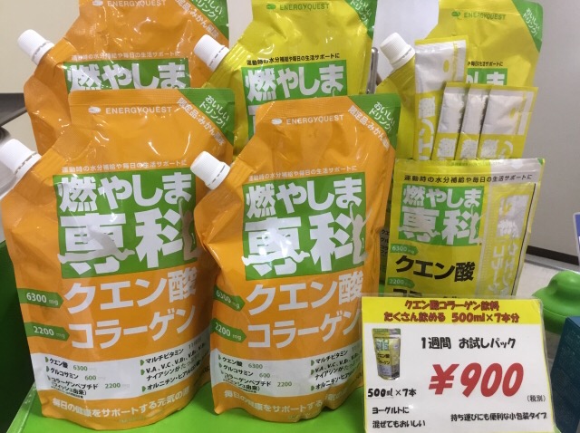 本日は神奈川県内にあるスポーツクラブにて試飲会を行っていました。こちらの店舗でも大人気のクエン酸飲料『燃やしま専科』の限定フレーバー・みかん風味が初お披露目!!このところますます寒くなってきましたが、冬の新たな季節限定品になるみかん風味はスッキリとした飲み口とほんのり甘い香りが大好評でさっそく話題になっています。こちらの店舗で活動されている弊社契約の増田先生も一押しです!!増田先生はボルダリングもされていているので、いつかきっとボルダリング界にも燃やしま専科の波が押し寄せることでしょう!!