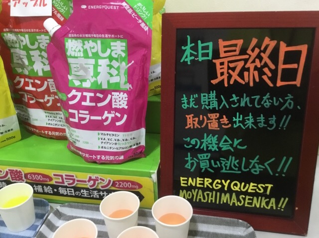 関西出張3日目、本日は京都府にあるスポーツクラブさんにて試飲会を行いました。本日の店舗は激辛の首都と呼ばれる激辛商店街が最寄りにありますが、こちらの店舗でもクエン酸飲料『燃やしま専科』が人気です。