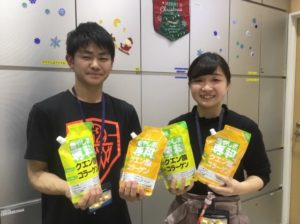 本日は神奈川県にあるスポーツクラブNAS南林間店さんにお邪魔して試飲会を行いました。南林間店さんでも人気のスポーツドリンク『燃やしま専科』ですが、お待たせしましたの新フレーバー・みかん風味が遂に登場です!!試飲はこれまでの限定風味に負けず劣らずの大好評!このみかん風味が、冬の新定番になるかもしれませんね。試飲会は今週の金曜日にも行いますので、この機会に是非お試しください!!