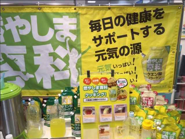 そんなサッカー日本代表の人気に負けず劣らず人気なのが、本日の試飲会で紹介する、クエン酸飲料の燃やしま専科です。