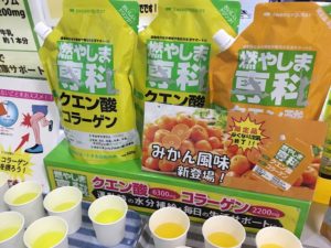 本日は広島県にあるスポーツクラブにて、クエン酸コラーゲン粉末スポーツドリンクの「燃やしま専科」の試飲会を開催しております。