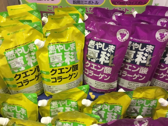 本日は東京都にあるスポーツクラブにて、クエン酸コラーゲン粉末スポーツドリンクの「燃やしま専科」と、クエン酸アミノ酸粉末スポーツドリンクの「アップイー」、「ダウンエフ」の試飲会を開催しております。