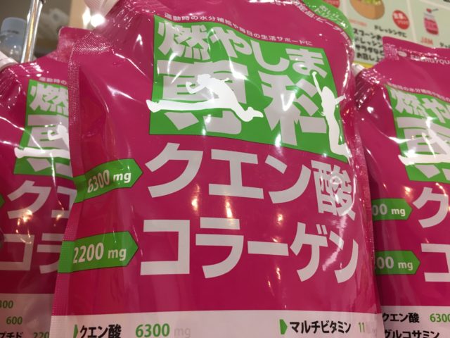 『燃やしま専科』とは、クエン酸、コラーゲン、マルチビタミン、ミネラル、カルシウム、オルニチン、葉酸等、27種類の成分配合です。商品は粉末になっており、使いたい時に溶かすだけです。お水に溶かせばスポーツドリンク、そして、レモン代わりにお料理にも使える商品です。