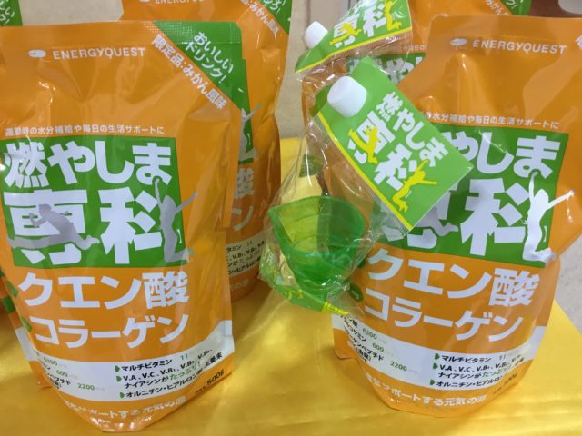 そんな中大阪府にあるスポーツクラブで、クエン酸ドリンクの「燃やしま専科」の試飲会を行いました。試飲商品は、「レモン風味」「みかん風味」でした。