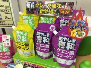 クエン酸ドリンク『燃やしま専科』はクエン酸にビタミン・ミネラル類を多く含み、コラーゲンやヒアルロン酸、グルコサミンやオルニチンなど27種類の栄養成分を配合した美容と健康をサポートするスポーツドリンクです。定番のレモン風味に加え、季節ごとの限定風味が楽しめるのも人気の秘密です。皆さまのスポーツやフィットネスライフのお供に、おススメです!