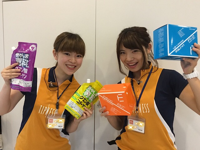 本日は東京都にあるフィットネスクラブ・ティップネス喜多見店さんにお邪魔して試飲会を行いました。こちらの店舗でも全国のスポーツクラブで大人気のクエン酸飲料『燃やしま専科』の夏季限定のグレープ風味が新登場!これまでのクエン酸のイメージを崩すような甘酸っぱい美味しさが大好評でした。試飲会は本日のみですが、喜多見店さんでは8月31日までお買い得なキャンペーン中です。『燃やしま専科』の定番のレモン風味に加え、アミノ酸も配合した『アップイー』と『ダウンエフ』もご用意しております。この機会に是非お買い求めください。