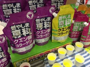 本日は神奈川県内にあるルネサンス橋本店さんにて「燃やしま専科」の試飲会を行いました。こちらの店舗では多くのお客様がクエン酸飲料「燃やしま専科」を愛飲してくださっていますが、今回は定番のレモン風味に加え、新フレーバー・グレープ風味が登場して、試飲会は大好評でした。試飲会は本日のみですが、9月17日までお買い得なキャンペーン中ですので、この機会に是非お買い求めください。