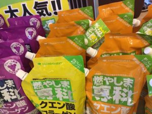 燃やしま専科には、クエン酸はもちろん、コラーゲン、オルニチン、ミネラル、グルコサミン、食物繊維、カルシウムなど27種類もの成分が入っ