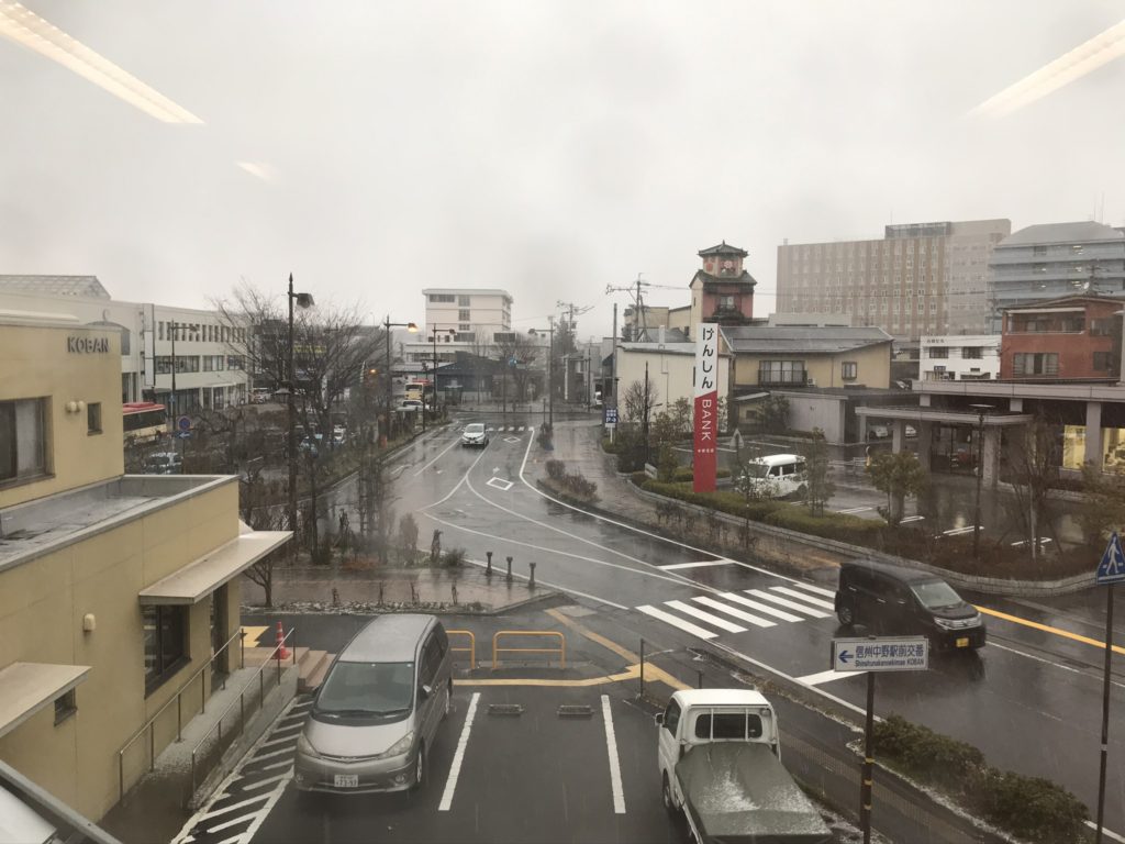 出張先で初雪を体験。朝は天気良かったんですが、午後から急に天気変わりだし、夕方にみぞれから雪に変わりました。