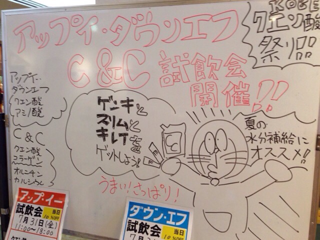 さて、そんなへっちーは気持ちが高ぶって、クエン酸スポーツ飲料、アップイー、ダウンエフ、C&Cのご紹介!
