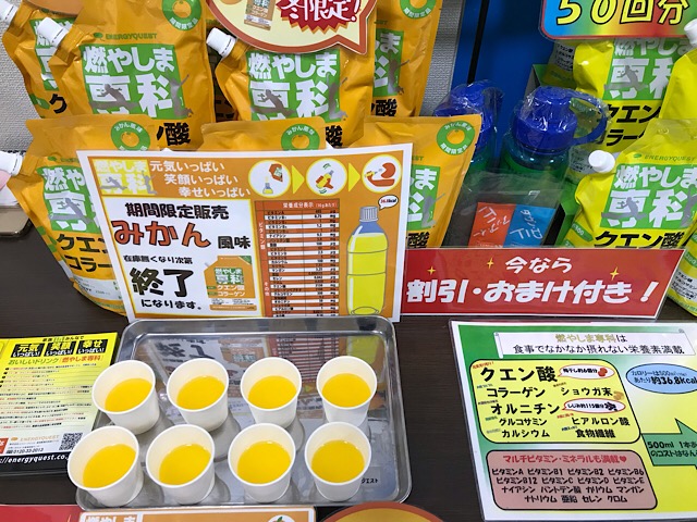寒さ対策にはホットの燃やしま専科 今週は関西のスポーツクラブにお邪魔しました。こちらの店舗でも日本全国のスポーツクラブで大人気の『燃やしま専科』の愛飲者さんが多くいらっしゃいます。燃やしま専科は定番のレモン風味に加え、冬…