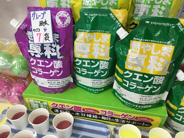 今年も復刻のゆず風味が人気! 本日は神奈川県内にあるスポーツクラブにて試飲会を行いました。こちらの店舗は弊社商品であるクエン酸飲料「燃やしま専科」を愛飲されているお客様が多く、今回の試飲販売会も大好評です。そしてついに今…