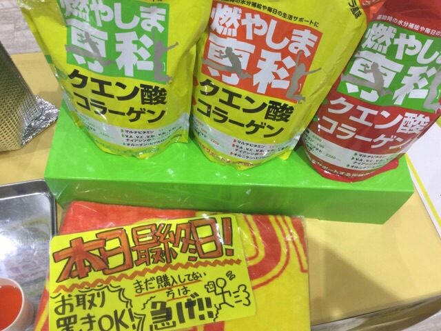 NAS博多ばい!!! 今日で長かった九州でのキャンペーンは最終日ばい!最後を飾るのは、NAS博多ばい!!! 17時までの試飲会ばい!試飲会の試飲商品はもちろん燃やしま専科ばい(^O^) クエン酸とコラーゲンたっぷりなクエ…
