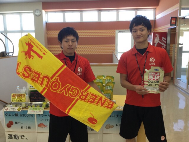 九州4日目は名城・熊本城で有名な熊本にやってまいりました。本日は熊本市内にあるスポーツクラブでクエン酸アミノ酸スポーツ飲料『アップイー』と『ダウンエフ』の試飲会を行いました。 『アップイー』はクエン酸にBC…
