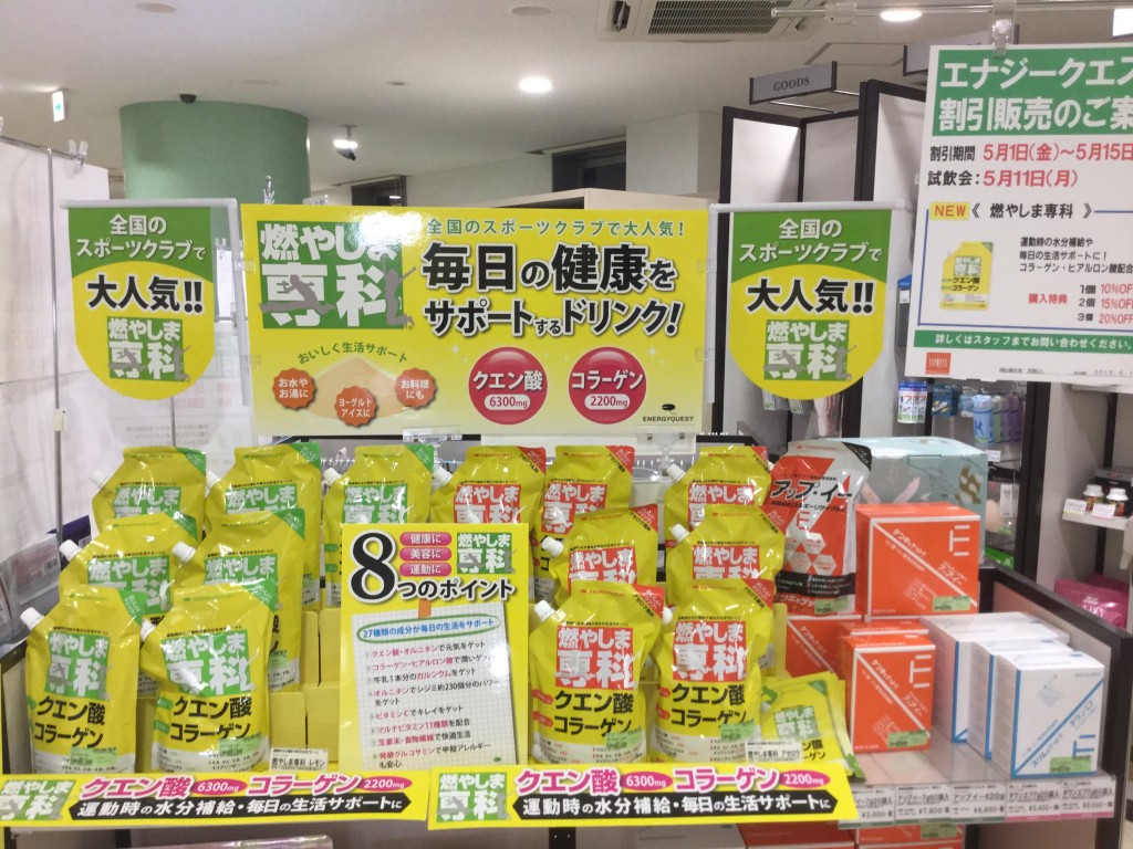滋賀県大津市NAS大津一里山店 クエンにちは〜 本日は滋賀県大津市にあります、NAS大津一里山店さんにお邪魔しクエン酸粉末スポーツドリンク《燃やしま専科》の試飲販売会をさせていただきました\(^o^)/ ただいま関西は台…