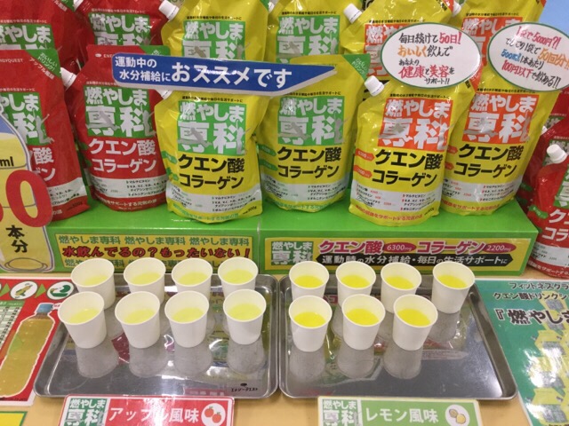 たくさんの栄養補給ができます 今日も神奈川のスポーツクラブで クエン酸粉末タイプのスポーツ ドリンクの試飲会でした! 燃やしま専科は、 クエン酸、コラーゲン、ヒアルロン酸 ビタミン、ミネラル、カルシウム グルコサミン、オ…