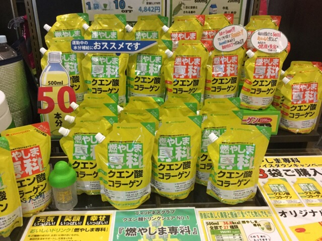 クエン酸コラーゲン粉末飲料【燃やしま専科】 こんにちわ‼︎ピロです( ̄▽ ̄)今日はあいにくの雨…にもかかわらず、たくさんの人がこちらのジムにいらっしゃいます‼︎(≧∇≦) 本日はクエン酸コラーゲン粉末飲料【燃やしま専科】…