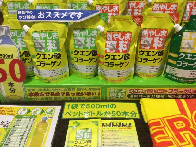 お飲みになられましたでしょうか?? こんにちは\(^o^)/ 本日は東京都にあるスポーツクラブにて、クエン酸コラーゲン粉末スポーツドリンクの「燃やしま専科」と、クエン酸アミノ酸粉末スポーツドリンクの「アップイー」、「ダウ…