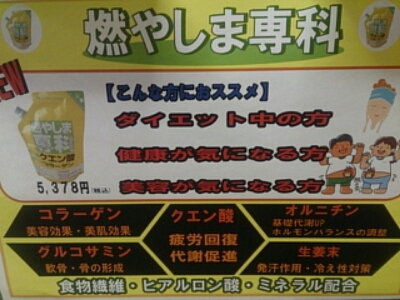 栄養素がたっぷり 本日は兵庫県にあるスポーツクラブさんで、 クエン酸粉末タイプのスポーツドリンク 『燃やしま専科』の試飲会を開催してきました。 こちらの店舗さんでも本日が試飲会最終日でしたので大変ブースは盛り上がりました…