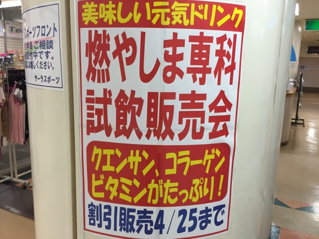 この機会に燃やしま専科生活をスタート 本日も昨日に引き続き、静岡県にあるサーラ浜松店さんにてクエン酸コラーゲン粉末スポーツ飲料の「燃やしま専科」の試飲会を開催しております。 昨日の広島カープの試合は雨にため雨天中止。選手…