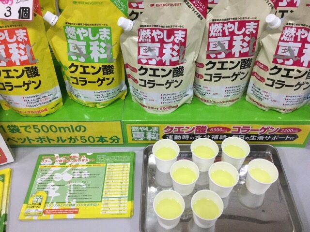 夏の水分補給にオススメなすっきりした飲み口 本日も神奈川県から。こちらの店舗でもクエン酸ドリンク『燃やしま専科』が大人気。 定番のレモン風味と今年の夏の限定品のライチ風味、どちらも美味しいと評判が良く、さっそく完売でした…