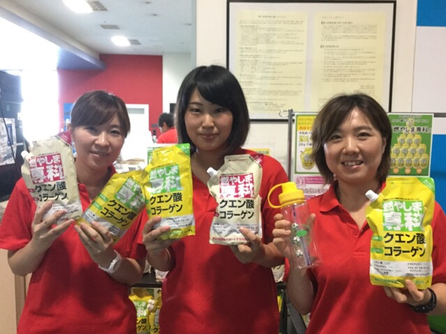 ライチ風味も好評販売中 本日は、東京都西東京市にある、スポーツクラブルネサンス東伏見店 にて、クエン酸コラーゲン粉末飲料「燃やしま専科」の試飲販売会を 開催しました。地域密着型店舗のため、突然の雷雨等で今日は自転車 では…